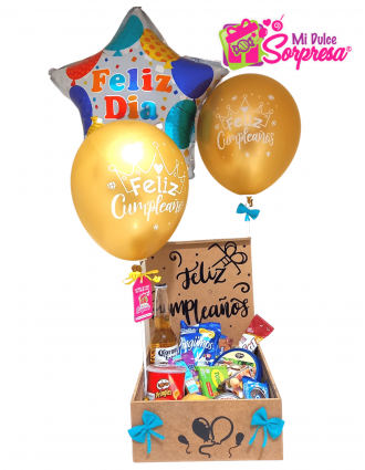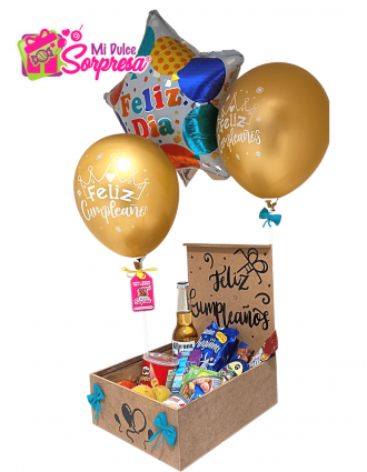 Caja en mdf con tapa personalizada para celebrar esa fecha especial, encuentra en su interior productos de las mejores marcas